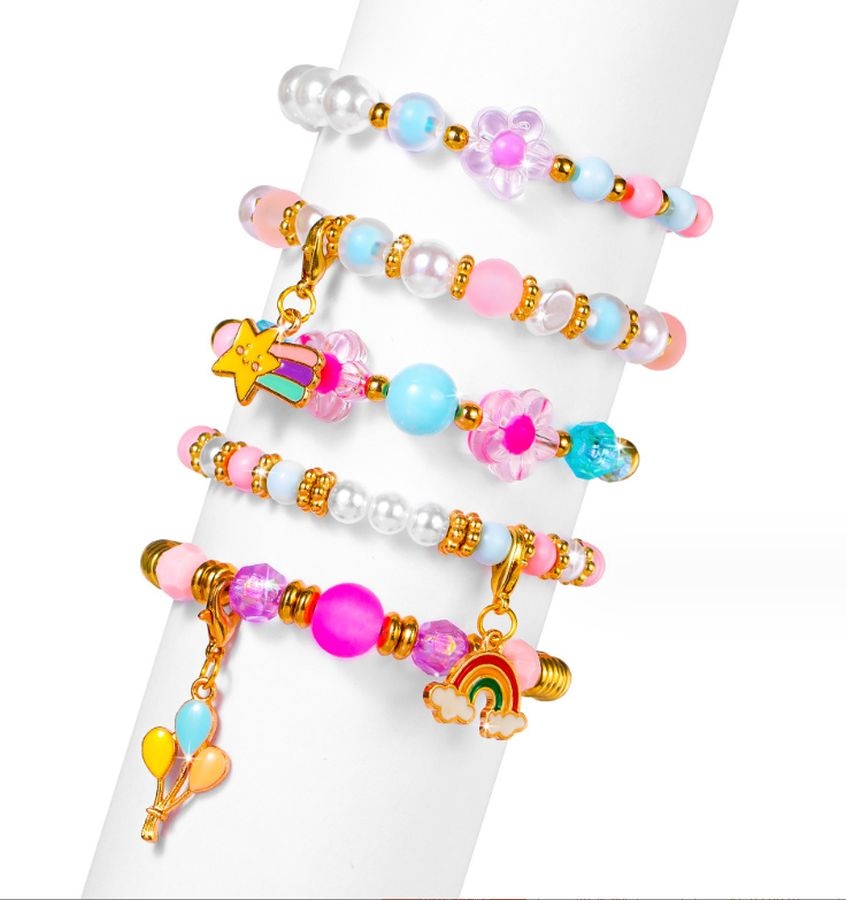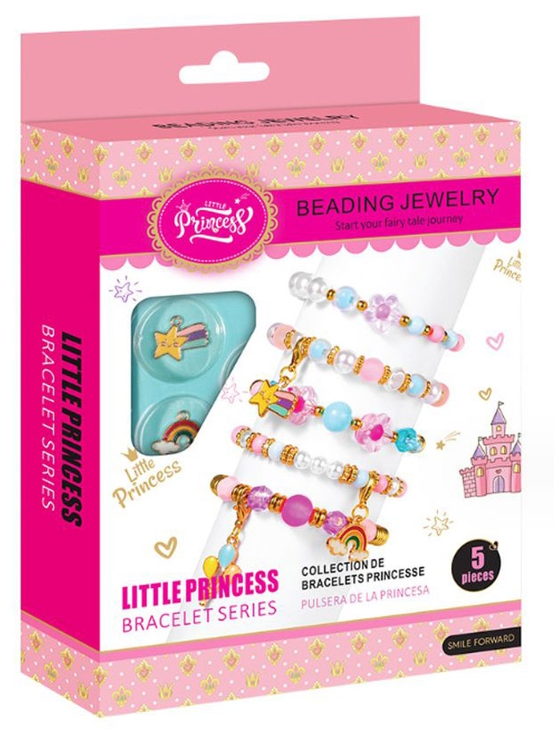 Käevõrude valmistamise komplekt LITTLE PRINCESS Pärlid ja lilled, 5 tk.