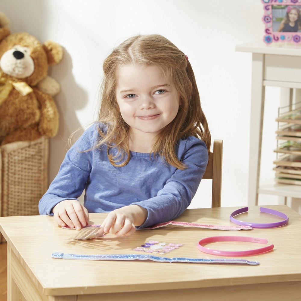 Kui otsid uusi stiilideid või mõtled lihtsalt, kuidas oma langevaid juukseid näo eest ära hoida, siis tee ise oma peavõru, kasutades MELISSA & DOUG Design Your Own Kit’i. Sellest leiad kõik vajalikud vahendid, et valmistada kaks täiuslikku peavõru. Kasuta komplektis olevaid võrude toorikuid, kleebiseid ja säraliimi, et luua oma ainulaadne peavõru. Lase oma kujutlusvõimel lennata ja saad ideaalse ehte, mida uhkusega kanda. Komplekt aitab arendada laste motoorikat ja kujutlusvõimet. Lastele alates 4. eluaastast. Hoiatus! Ei sobi alla 3-aastastele lastele. Väikesed detailid, lämbumisoht. Kasutada täiskasvanu järelevalve all. Komplekti kuulub 2 võru, 2 kahepoolset võru, umbes 50 särakleebist, säraliim.