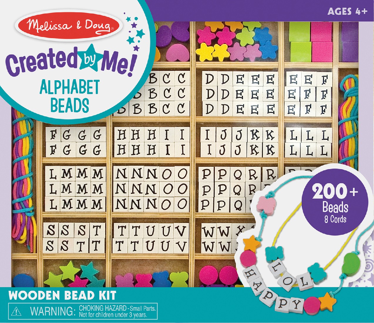 Mõnikord soovid, et ehe oleks sinu enda tehtud. Valmista oma nimega ehteid MELISSA & DOUG puidust helmeste komplektiga. Selle abil saab tavaliselt valmistada lausa kaheksa kaunist ehet. Komplekt on pakitud käepärasesse puidust karpi. Kasuta eri värvi tähti, kuubikuid, palle, lilli, südameid ja kanna oma ehteid uhkusega. Saad valmistada nii palju erinevaid ehteid. Komplekt aitab arendada laste motoorikat, kujutlusvõimet, silmade-käte koordinatsiooni ja loovust. Lastele alates 4. eluaastast. Hoiatus! Ei sobi alla 3-aastastele lastele. Väikesed detailid, lämbumisoht. Kasutada täiskasvanu järelevalve all. Komplekti kuulub umbes 200 värvitud puuhelmest ja 8 nööri.