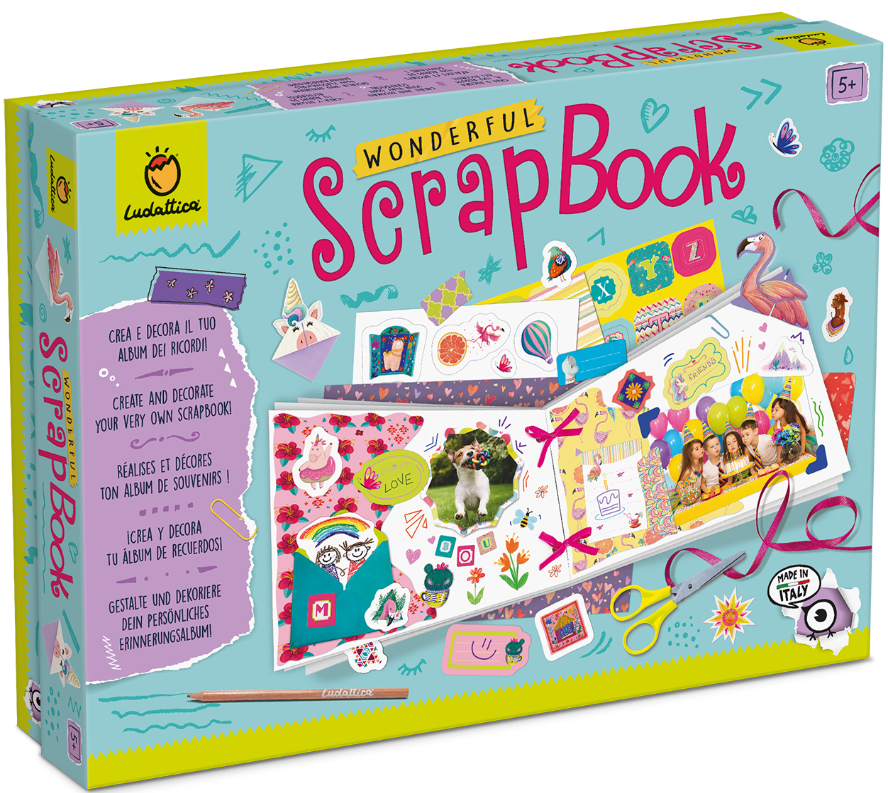 LUDATTICA Maagiline kraapimine on eriline loominguline komplekt, mis on mõeldud lastele, kes soovivad luua unikaalse mälestuste albumi! See album võimaldab lastel säilitada kalleid hetki, fotosid, pileteid, erinevaid väljalõigete elemente ja kaunistada neid vastavalt oma fantaasiale. Kasutades erinevaid komplektis olevaid vahendeid, saavad lapsed eksperimenteerida erinevate tehnikatega, nagu šabloonide kasutamine, kollaaž, joonistamine ja lõikamine. See komplekt arendab loomingulist eneseväljendust, peenmotoorikat, keskendumist ja kujutlusvõimet, soodustab oluliste hetkede meeldejätmist, arendab aja ja ruumi tajumist kompositsioonide loomisel. Soovitatav lastele alates 5. eluaastast. Hoiatus! Ei sobi alla kolmeaastastele lastele. Väikesed detailid, lämbumisoht. Kasutada täiskasvanu järelevalve all. Komplekti kuulub tugev papist albumi kaaneosa, 12 papist lehte sisekülgedeks, käärid, pliiats ja liim, paelad ja elastsed detailid, kleebised ja šabloonid, dekoratiivsed paberilehed, instruktsioonid.