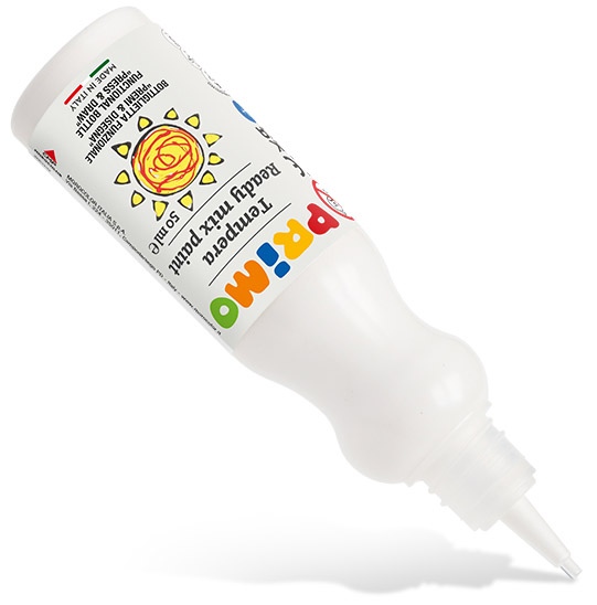 Guašš ergonoomilises pudelis PRIMO, valge, 50 ml. Pudel koos voolu reguleerimise otsikuga. Kui otsite uusi joonistamis- või loovtehnikaid, proovige meie uusi guašipudeleid! Hoidke neid otse käes ja pigistage aeglaselt: saate joonistada 3D-efektiga või luua muid eriefekte! Värve saab kasutada graafilise tööriistana või täpselt doseerida enne pintsli kasutamist. Saab luua tekstuurseid efekte, värvida läbipaistmatute kihtidena. Oluline on oodata, kuni iga kiht on hästi kuivanud. Saavutatakse ühtlane pintslitõmme, värvid on kirkad ja elujõulised. Sobib kasutamiseks erinevatel pindadel: paberil, papil, puidul, kandal (audinys), klaasil, terrakotal, metallil ja plastil. Värve saab pikaajaliseks säilimiseks fikseerida spetsiaalse fiksaatoriga. Need ühilduvad kogu PRIMO veepõhiste värvide sarjaga. Puhastage plekid viivitamatult, enne tööd kaitske pindu ja riideid. Loovidee: võtke paksem papp (kare või sile, värviline või valge) ja tilgutage üks värv teise sisse, neid segamata. Nii saate kihilised, kontsentrilised erinevat värvi rõngad. Seejärel „venitage värve“ eri suundades, kasutades hambaorki või mõnda terava otsaga eset. Saate fantastilisi ja ootamatuid efekte!