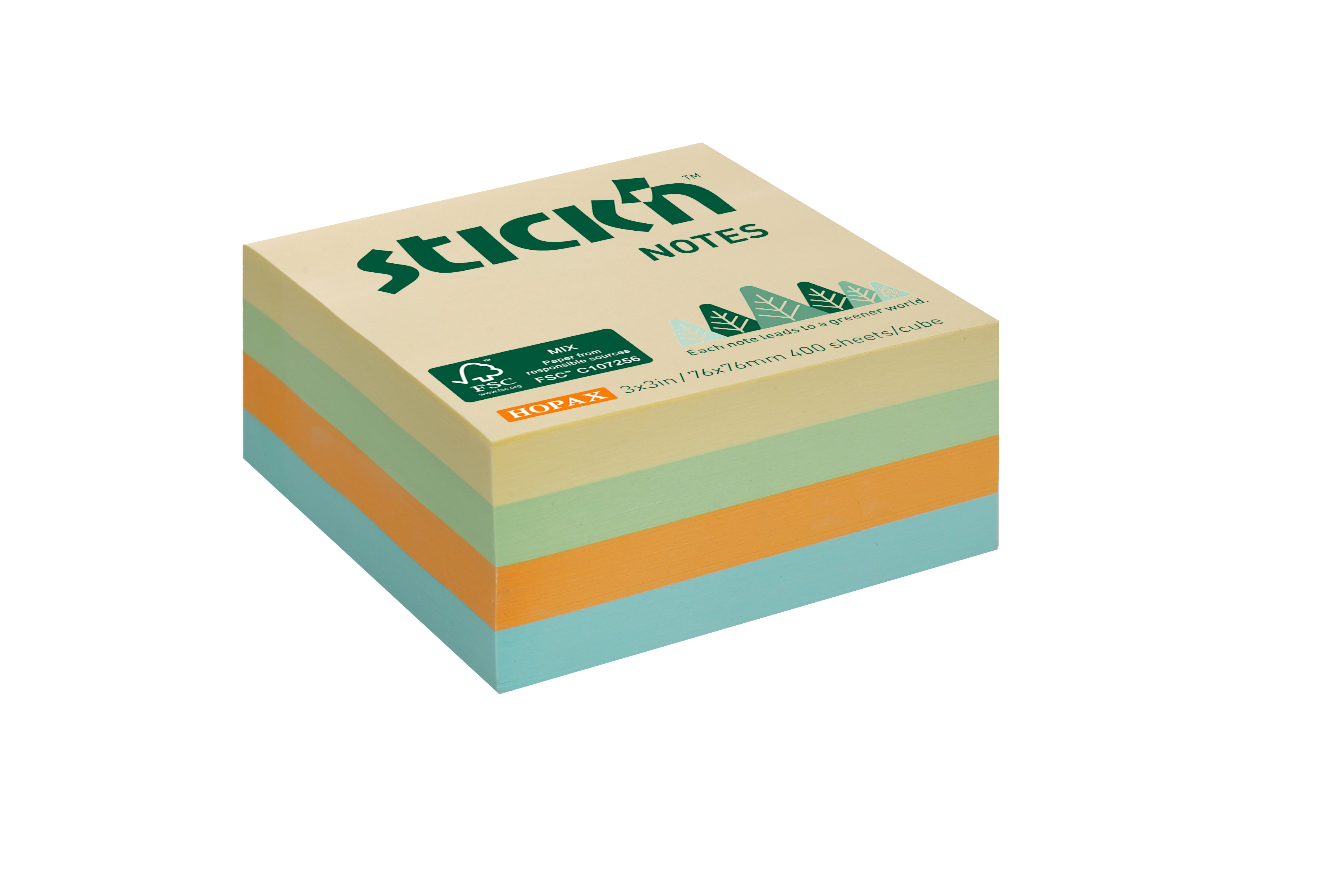 Kleepmärkmed STICK´N, FSC, 76 x 76 mm, 400 lehte, erinevad heledad värvid