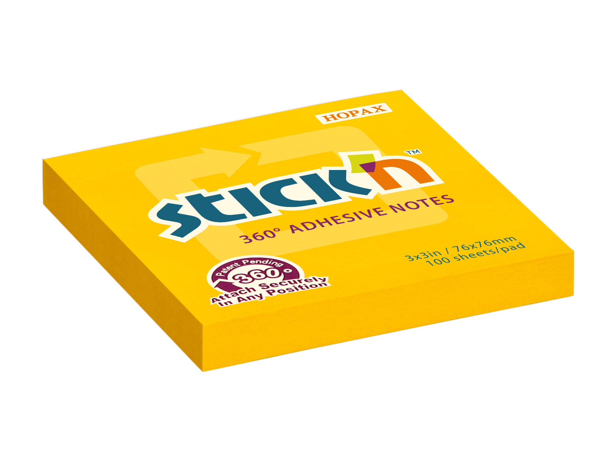 Kleepmärkmed STICK´N, 360°, 76 x 76 mm, 100 lehte, oranžid