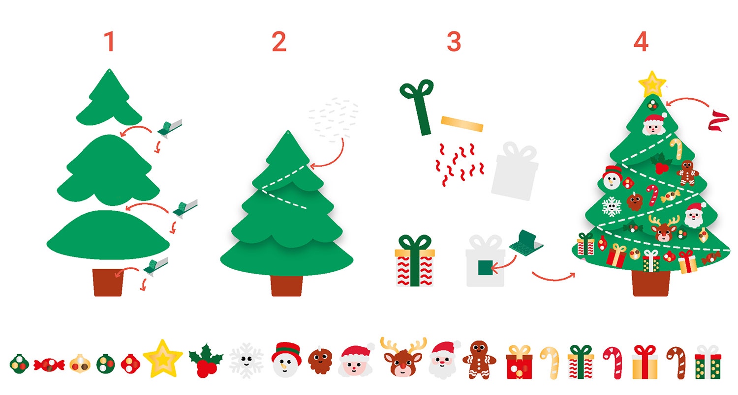 Hiiglaslik kokkupandav vildist jõulukuusk kleebitavate ehetega LOOLIPO