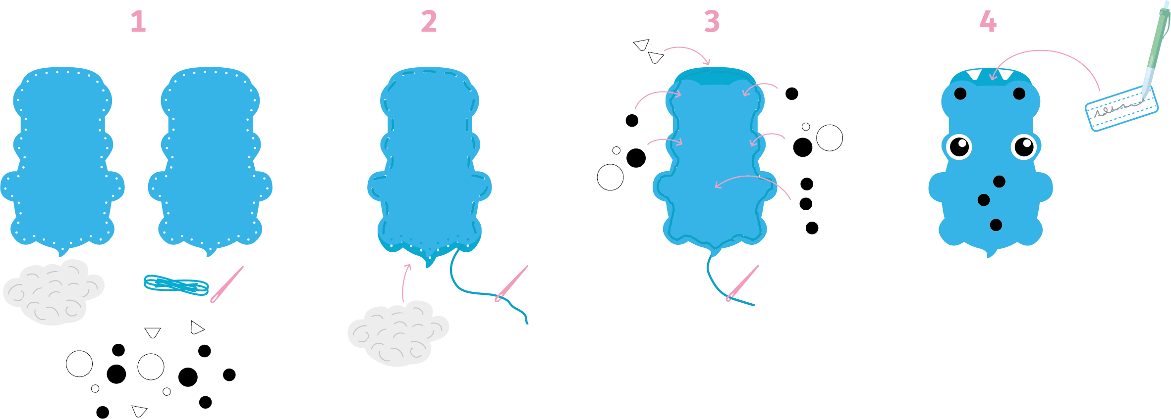 Õmbluskomplekt SODERTEX Lohutavad loomad, 3 tk.