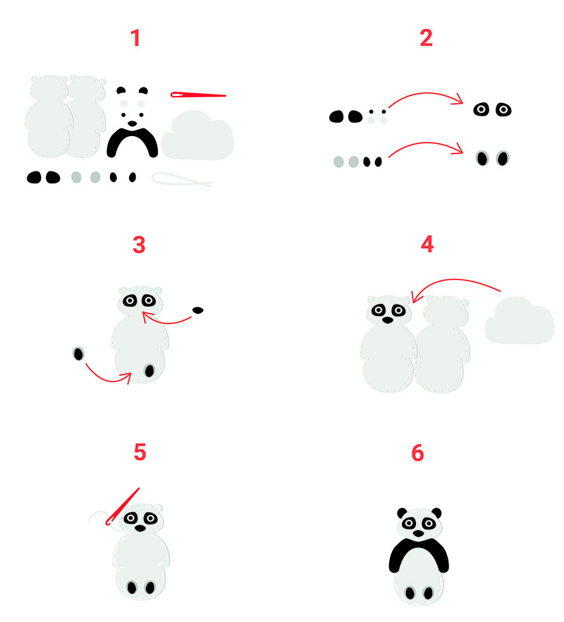 Õmbluskomplekt LOOLIPO Pandad, 3 tk.