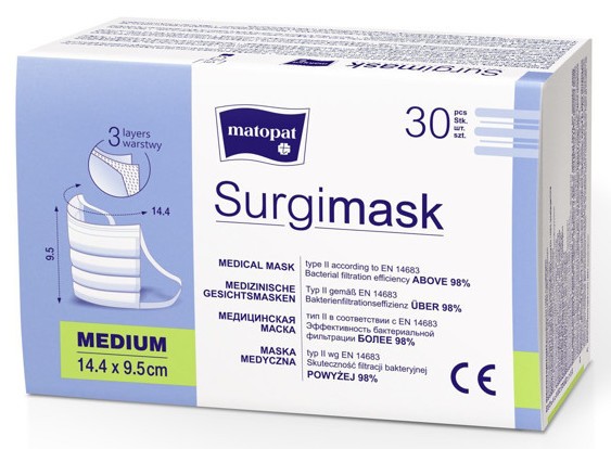 Ühekordsed II tüüpi meditsiinilised laste näomaskid, laia kummiga, 30 tk