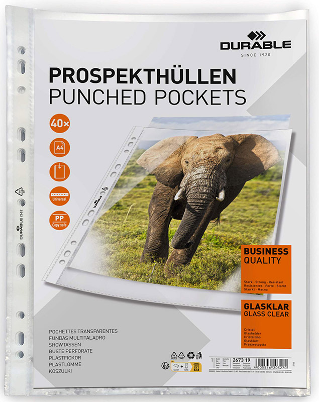 DURABLE Business dokumenditaskud, A4, 48 µm, läbipaistvad, 40 tk.