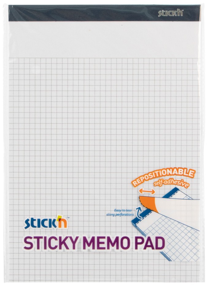 Märkmik STICK´N , 254x178 mm, ruuduline, 50 kleeplehte
