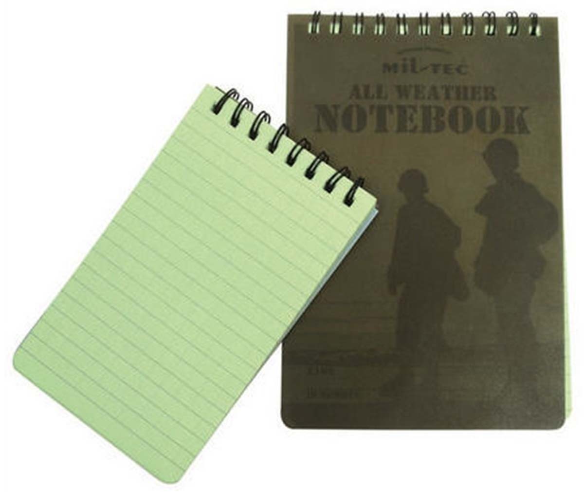 Märkmik MIL-TEC, 100x150 mm, 48 lehte, veekindel, vooderdatud, spiraal ülaosas