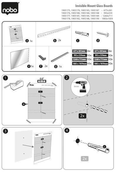 Magnetiline klaastahvel NOBO, laiekraan, 126x71 cm, 57, alumiiniumraam, valge