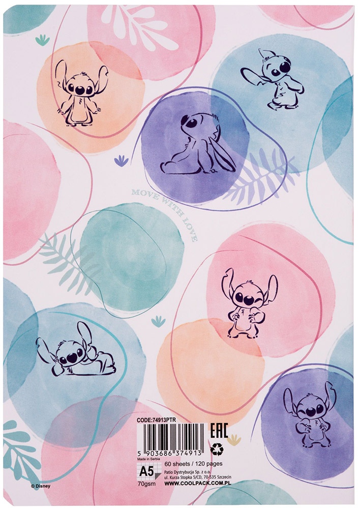 Ruuduline vihik DISNEY Stitch Pastel Nr. 1, A5, 60 lehte, 70 gms