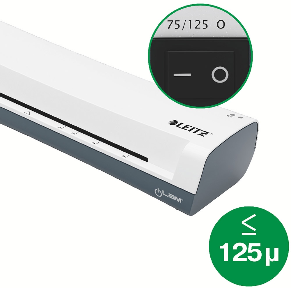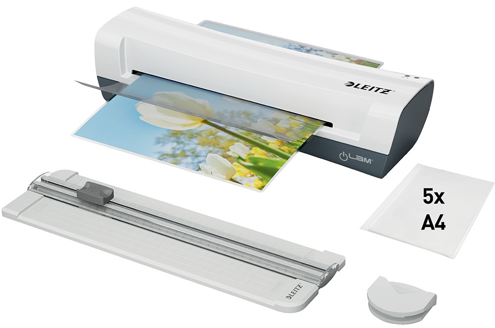 Täiustage oma loovprojekte Leitz iLam laminaatimiskomplektiga. Komplekti kuulub: 1tk Leitz iLAM Home A4 laminaator, 1tk nurgalõikur teravate nurkade eemaldamiseks, 1tk paberilõikur dokumentide lihtsaks ja turvaliseks lõikamiseks soovitud suuruseni, 5tk A4-formaadis UDT laminaatitaskut (2 x 80 mikronit). Kerge ja kompaktne Leitz iLAM Home A4 laminaator lisab teie kodukeskkonda elegantsi ja stiili. Laminaatimise formaat alates ID-kaardist kuni A4-formaadini. Lühike soojenemisaeg – 3 minutit. Sobib laminaatida 2x75 kuni 2x125 mikroni paksusi laminaatitaskuid. Lihtne laminaatimine ühe vajutusega, kasutades tavalist lülitit. Laminaatib kuni 10 taskut 10 minuti jooksul. Laminaatib 2x75 mikroni paksuse tasku 60 sekundiga. Ummistuse vabastushoob, mis võimaldab valesti sisestatud või kinni jäänud taskuid manuaalselt eemaldada. LED-indikaator, mis näitab toite sisselülitamist (punane) ja valmisolekut (sinine). Lõikuri mõõtmed (L x S x K): 109 x 360 x 32 mm. Lõikab kuni 5 lehte (80 g/m²) või 1tk laminaatitaskut (125 mikronit). Parimate tulemuste saavutamiseks kasutage Leitz UDT laminaatitaskuid. Garantii: 2 aastat.