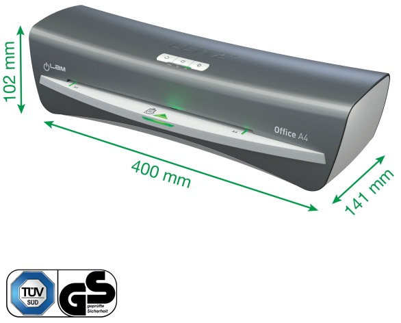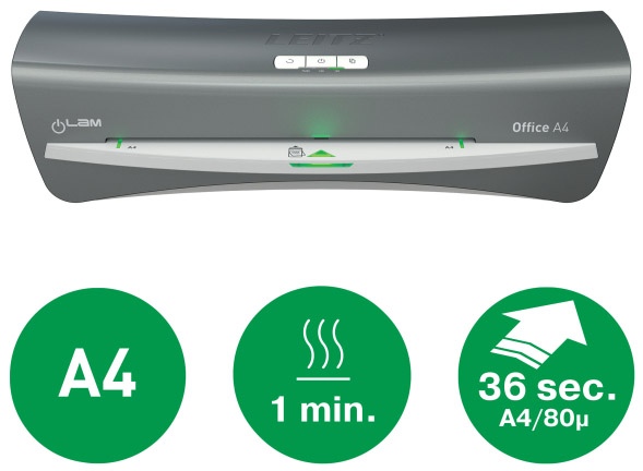 Kaasaegne ja kompaktne Leitz iLAM Office A4 laminaator ühendab laitmatult stiili ja tõhususe. Tagab lihtsa lamineerimise. Kiire soojenemisaeg, kasutusvalmis vaid 1 minutiga. Laminaatib ühe A4 dokumendi (2x80 mikronit) 36 sekundiga. Nutikas LED-olekunäidik: punane soojenemise ajal, roheline koos helisignaaliga, kui laminaator on kasutusvalmis. Nutikad sisestusjuhiku LED-tuled: tagavad, et taskud siseneksid laminaatorisse otse, vältides nii ummistusi. Intuitiivsel puutepaneelil on tagasikäigu nupp valesti sisestatud taskute lihtsaks eemaldamiseks. Sobib laminaatida 2x75 kuni 2x125 mikroni paksusi laminaatitaskuid. Energiasäästufunktsioon - lülitub automaatselt välja pärast 15-minutilist mittekasutamist. Andurid tuvastavad automaatselt tegevusetuse ja lülitavad seadme välja, säästes energiat. Komplekti kuulub 5 tk A4-formaadis (2x80 mikronit) laminaatitaskute komplekt. CE-sertifitseeritud, TUV/GS kinnitatud. Parimate tulemuste saavutamiseks kasutage Leitz UDT dokumendilaminaatitaskuid. Sobib fotode lamineerimiseks. Garantii: 2 aastat.