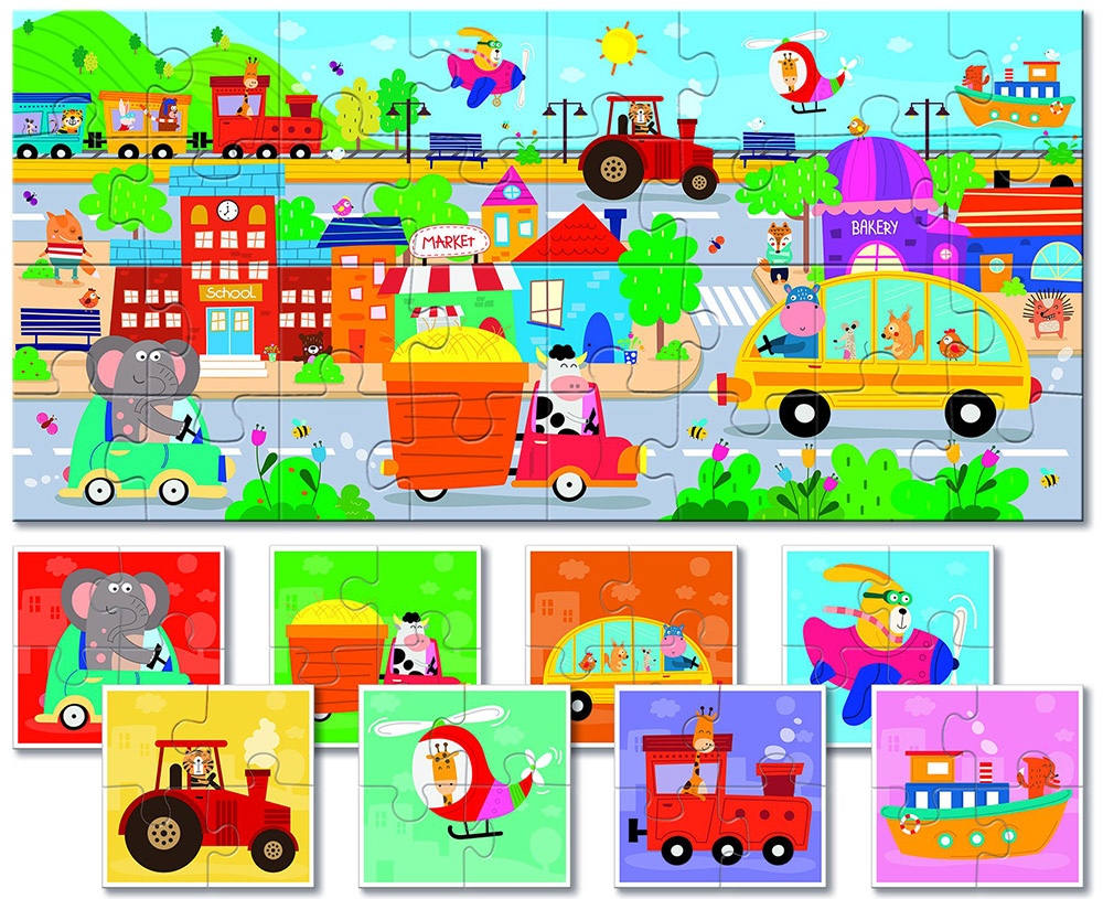 Kahepoolne pusle väikelastele LUDATTICA Transport, 32 osa
