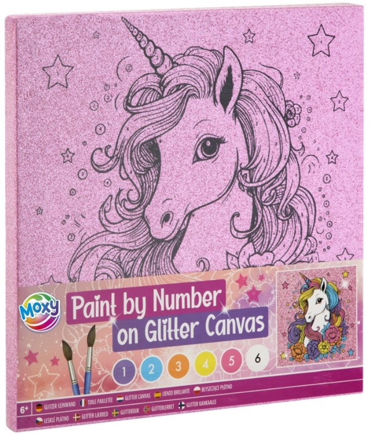 Maalimine numbrite järgi komplekt GRAFIX Ükssarvik, sädelev lõuend, 25x25 cm