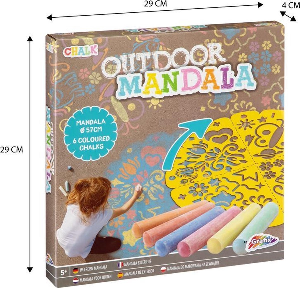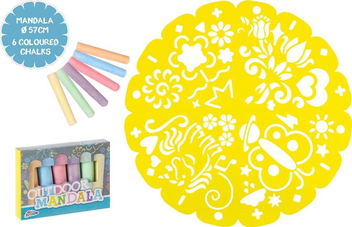 Mandala õuejoonistuste komplekt GRAFIX, 57 cm, 6 värvipliiatsit