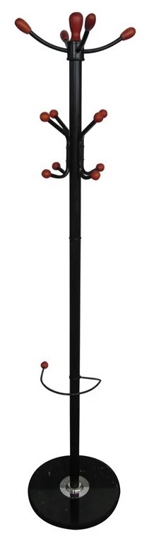 Riidenagi. Metallist raam, 12 kohta. Reguleeritav kõrgus. Aluse ja spetsiaalse rõngaga vihmavarjude hoidmiseks. Musta värvi.