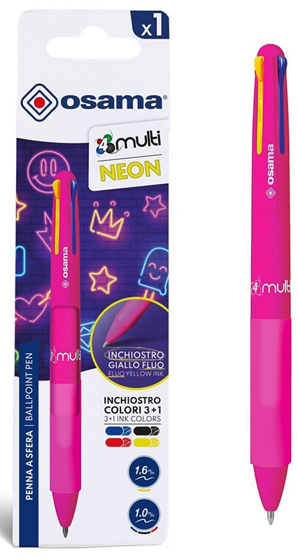 Automaatne 4-värviline pastapliiats OSAMA 4Multi Neon, 1 mm, roosa korpus