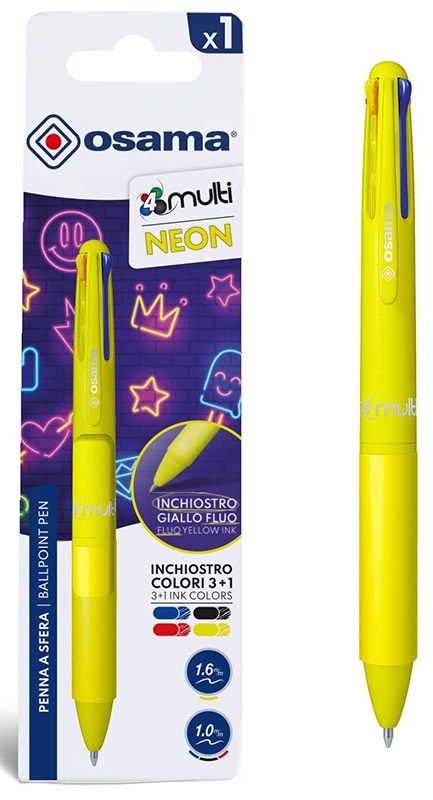 Automaatne 4-värviline pastapliiats OSAMA 4Multi Neon, 1 mm, kollane korpus