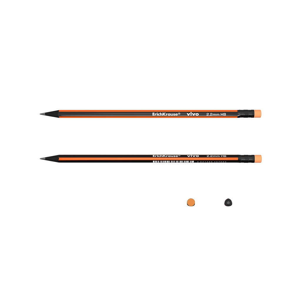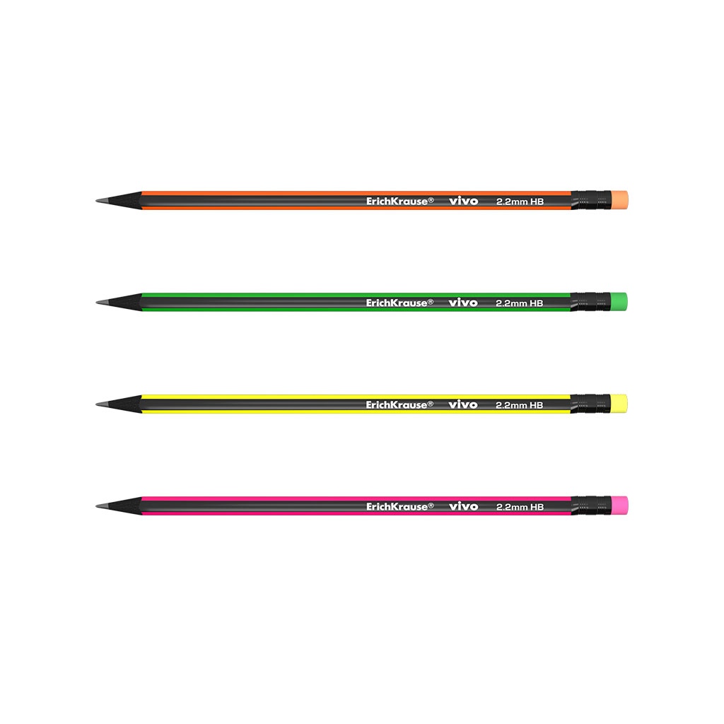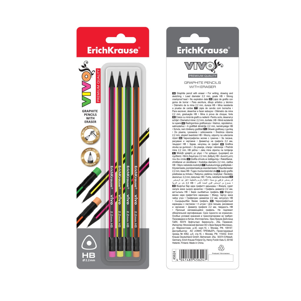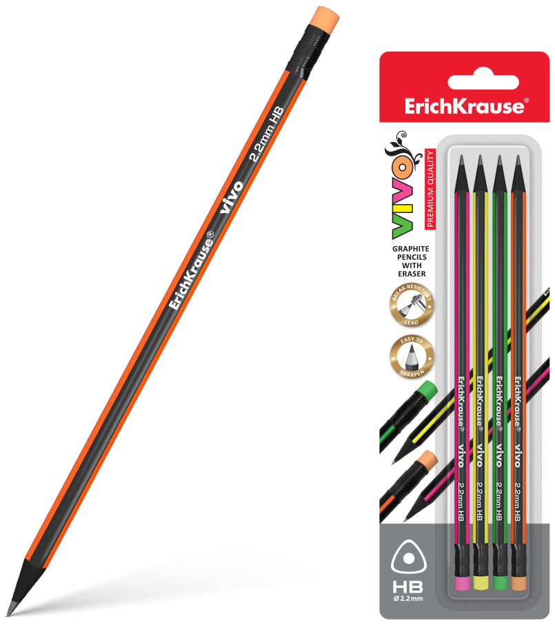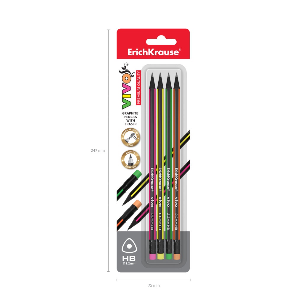 Pliiatsid ERICH KRAUSE VIVO®, kolmnurksed, kustutuskummiga, blisterpakendis, 4 tk, HB