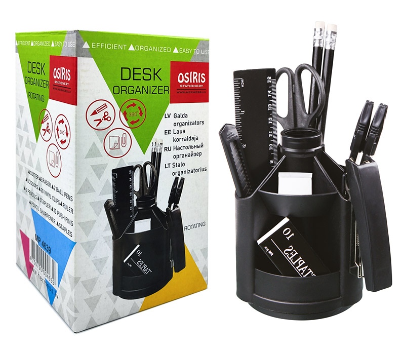 Täidetud pliiatsitops OSIRIS, 14 tarvikut, must