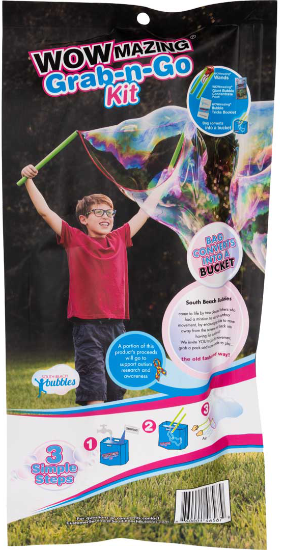 Komplekt sisaldab kontsentraadipakki ja spetsiaalset pulka seebimullide tegemiseks. Selle komplekti eripäraks on see, et seebimullide tegemiseks ei pea anumat kaasas kandma, sest komplektis olev kott muutub ise anumaks! SOUTH BEACH BUBBLES´iga lood SUPERhiiglaslikke mulle! Seebimullide võlu sünnib siis, kui lapsed mängivad koos pere või sõpradega värskes õhus, päikese all – see on imeline suvine ajaviide! Lapsed unustavad kiiresti kõik elektroonikaseadmed ja tahavad õues nautida erakordselt suuri seebimulle. Need seebimullid on tohutud, värvilised ja kauakestvad. Ideaalsed mängimiseks aias, pargis või rannas. Täiuslik tegevus lastele erinevatel puhkudel, näiteks sünnipäevapidudel. Keskkonnasõbralik – mittetoksiline ja biolagunev. Lihtne ja ohutu kasutada. Kasutamine: vala koti sisu komplekti, sega 1 liitri kraaniveega ja sega hoolikalt läbi. Seebimullidega mängimine parandab koordinatsiooni ja arendab motoorseid oskusi. Soovitatav lastele alates 6. eluaastast. Hoiatus! Ei sobi alla kolmeaastastele lastele. Mitte alla neelata. Hoida silma sattumisest eemal. Kasutada täiskasvanu järelvalve all. Valmistatud USAs - kõrgeim kvaliteet. Sisaldab: 1 paar mullipulki nööriga, kott seebimulli kontsentraati, millest saab 1 liitrit mullivedelikku, anum mullivedeliku jaoks. Valmistatud mullivedelikku saab kasutada erinevate mullimänguasjadega, näiteks mullimasinate või -kahuritega, mullipulkadega. Kui lahust jääb alles, muutub see seistes kontsentreeritumaks ja järgmisel mängimisel tekivad veelgi suuremad ja kauem püsivad mullid. Pulga pikkus: 32 cm.
