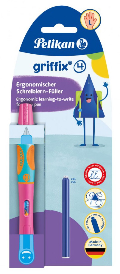 Täitesulepea PELIKAN Griffix‑4, vasakukäelistele, Lovely Pink, blister