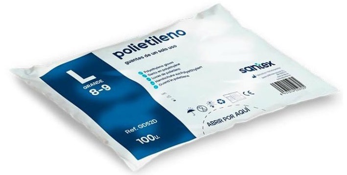 Ühekordsed polüetüleenist kindad SANTEX, universaalne suurus, läbipaistvad, 100 tk pakendis.
