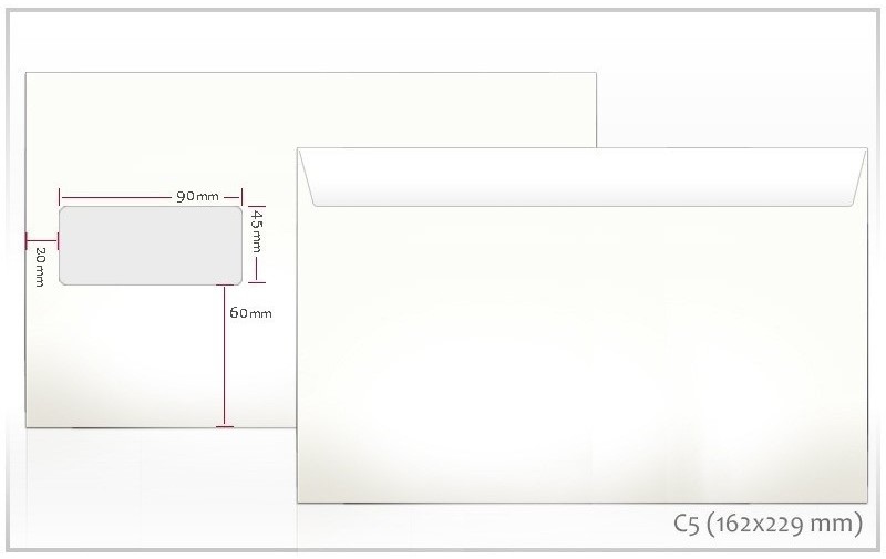 Ümbrikud C5, 162x229 mm, aken vasakul 45x90 mm, liimiribaga, 1000 tk
