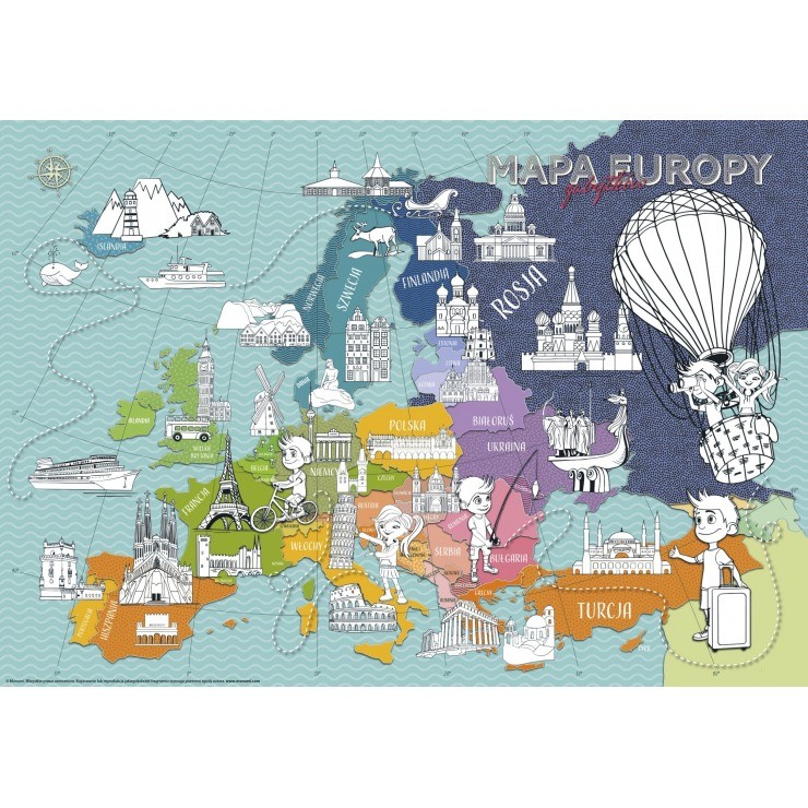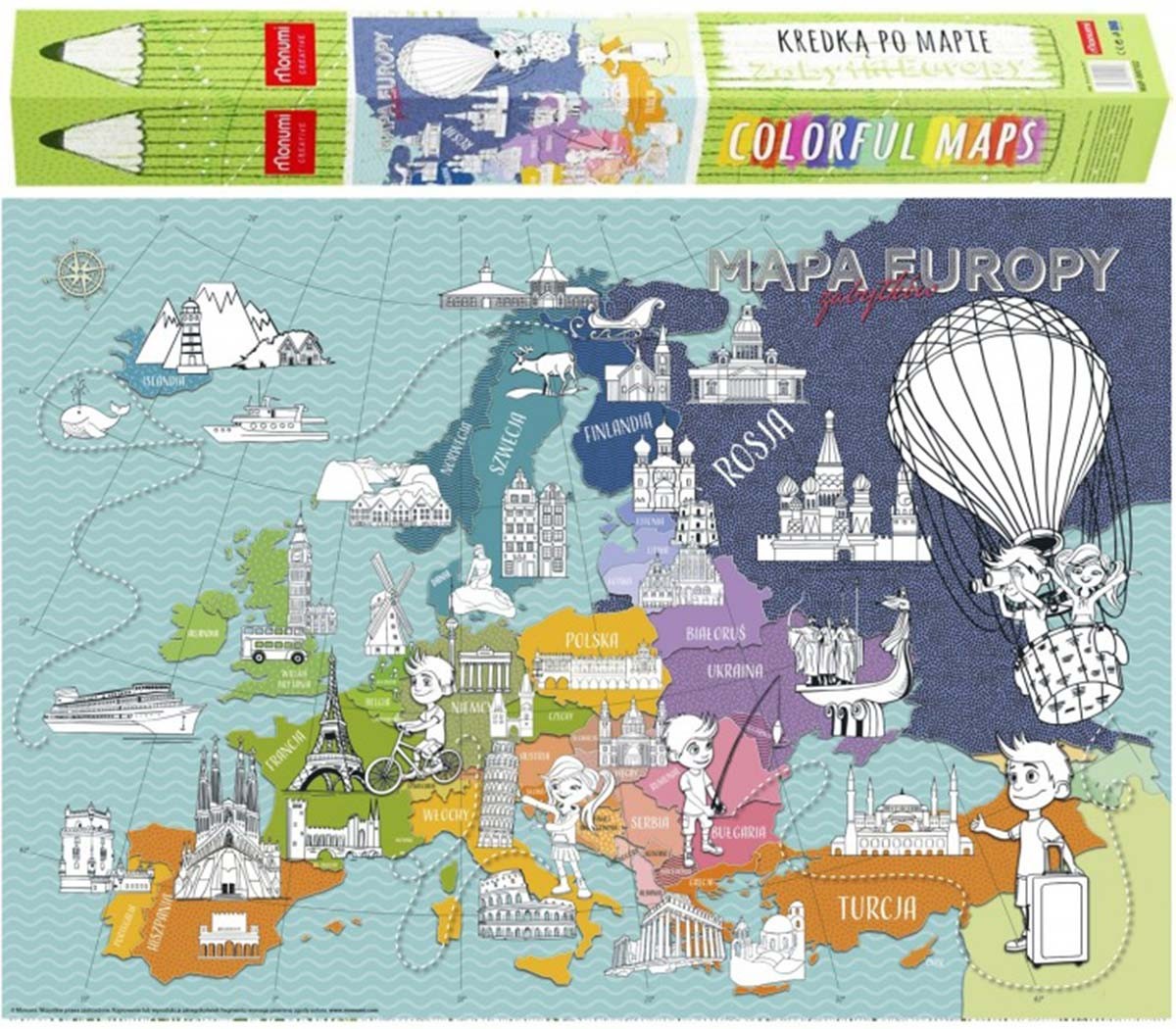 Värvitavate detailidega kaart MONUMI Euroopa mälestusmärgid, 84x59 cm