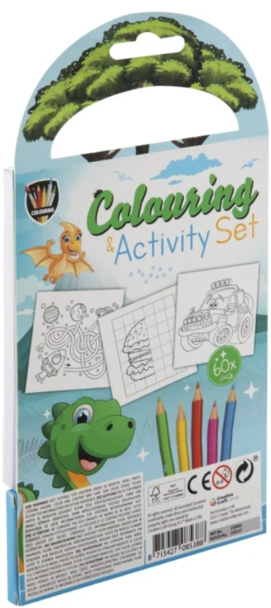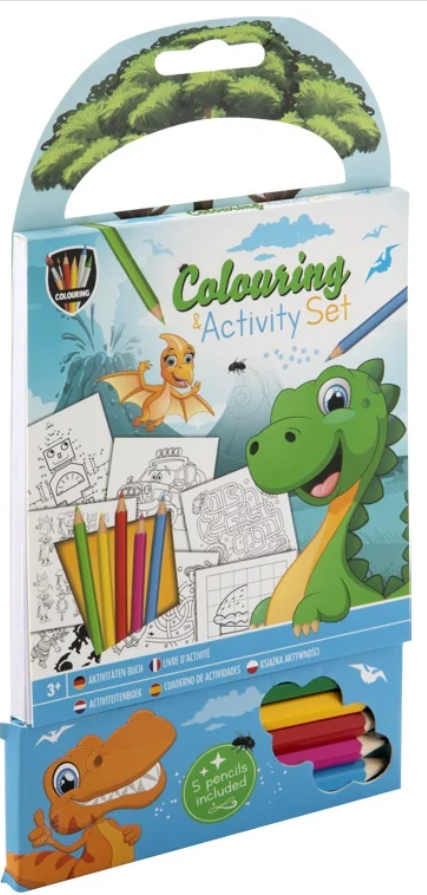 Värvimis- ja tegevusraamat GRAFIX Dinosaurus, 5 pliiatsiga
