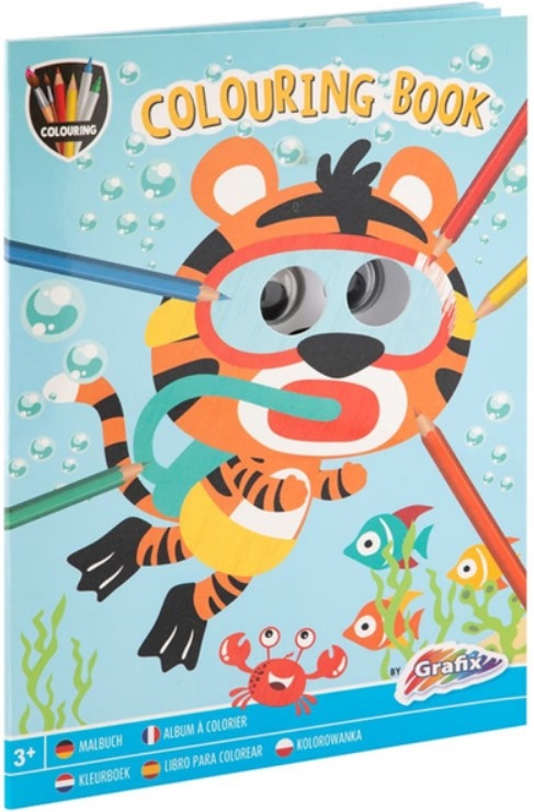 Värviraamat liikuvate silmadega GRAFIX Tiger, A4, 24 lehekülge.