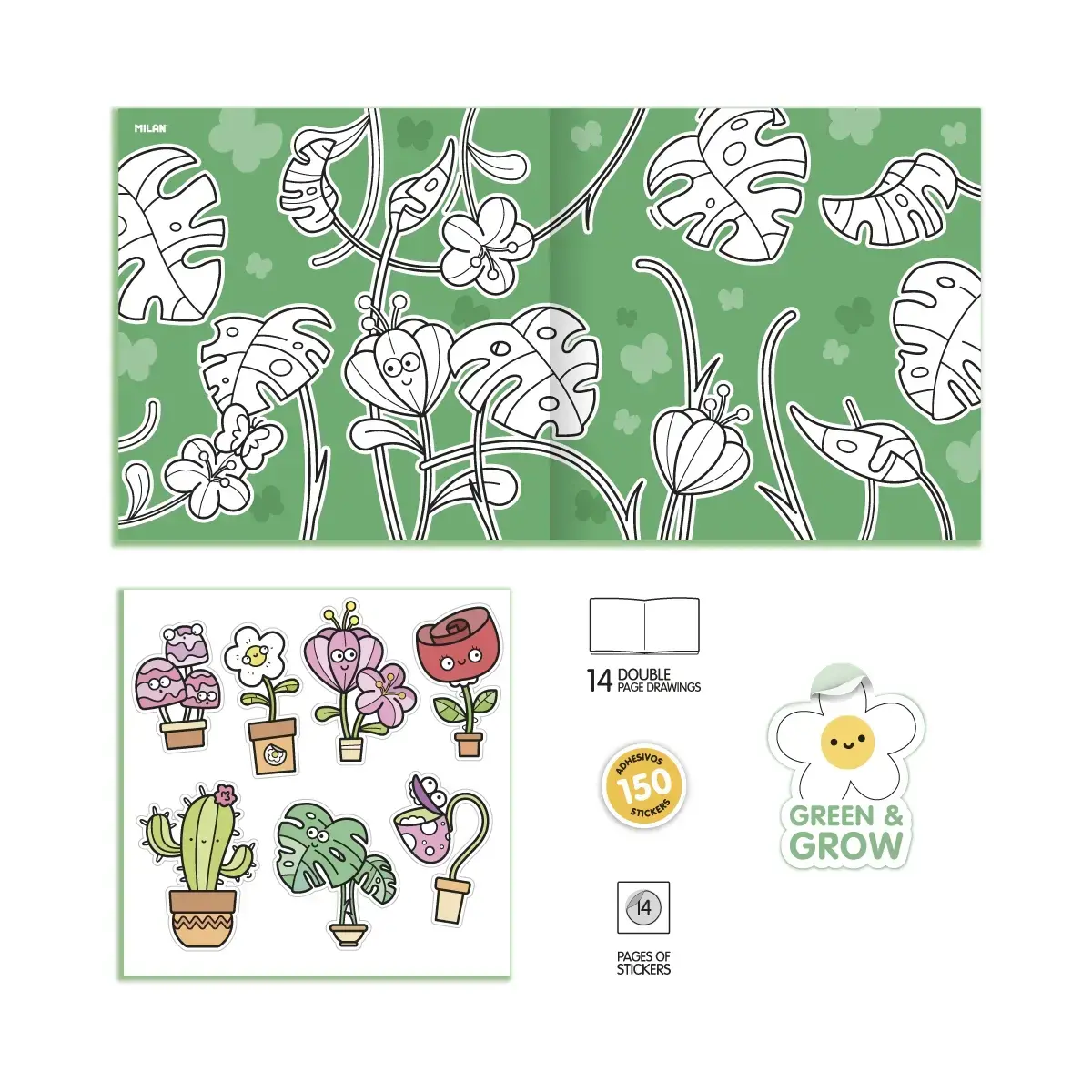 Värvimisvihik MILAN Green & Grow, kleebistega