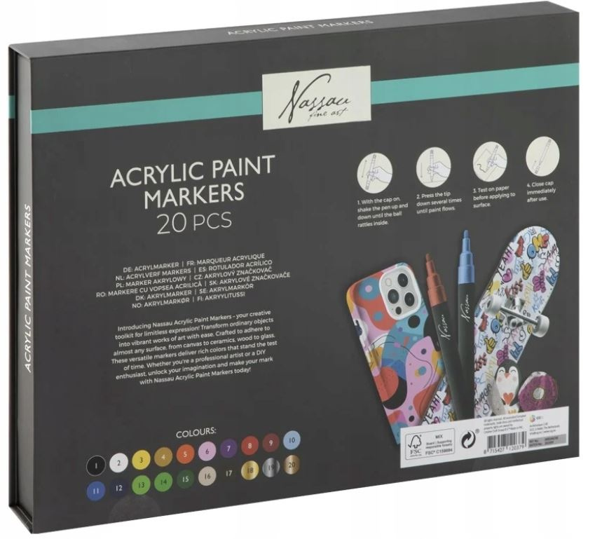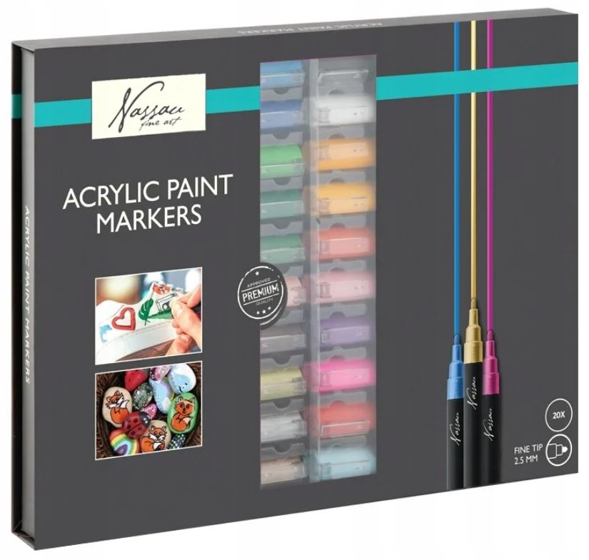 Akrüülmarkerite komplekt karbis NASSAU, 20 värvi