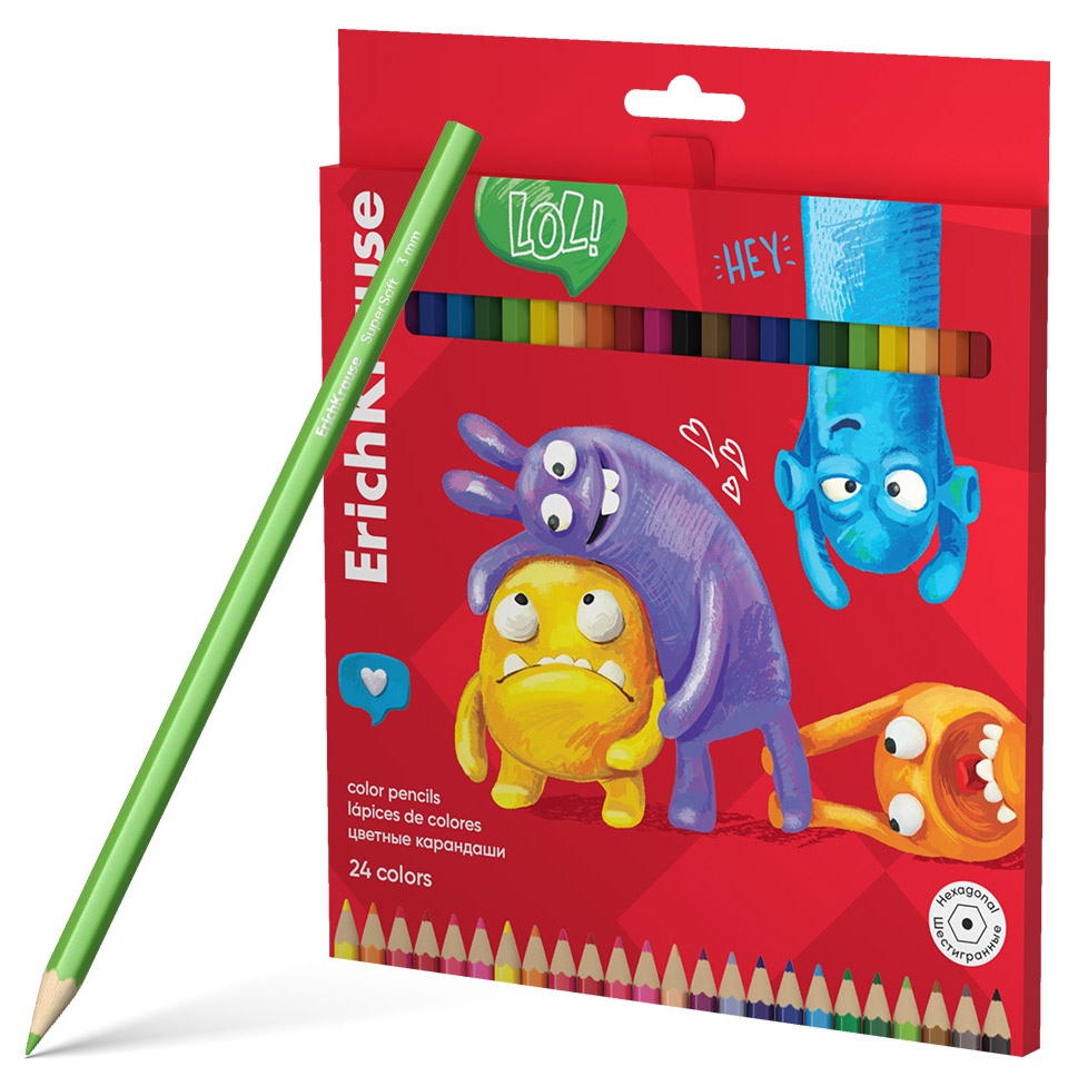 Värvipliiatsid ERICH KRAUSE Jolly Friends, kuusnurkne, 24 värvi