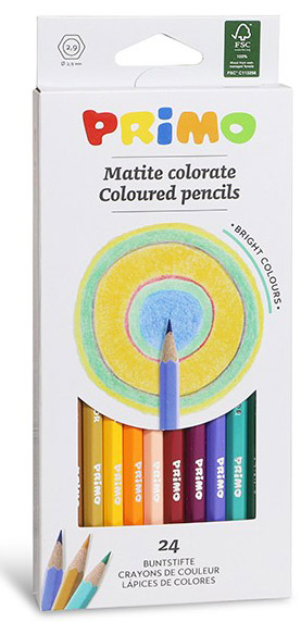 Värvipliiatsid PRIMO, kuusnurksed, 24 värvi