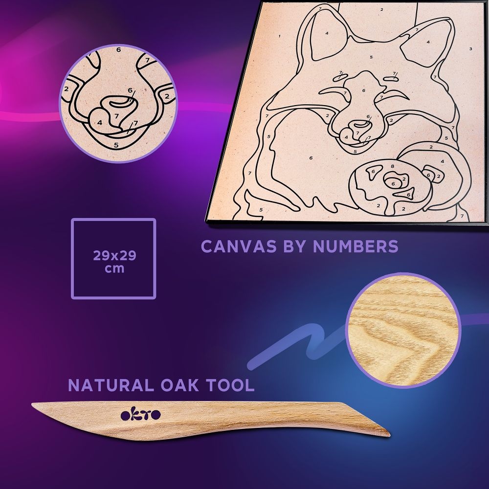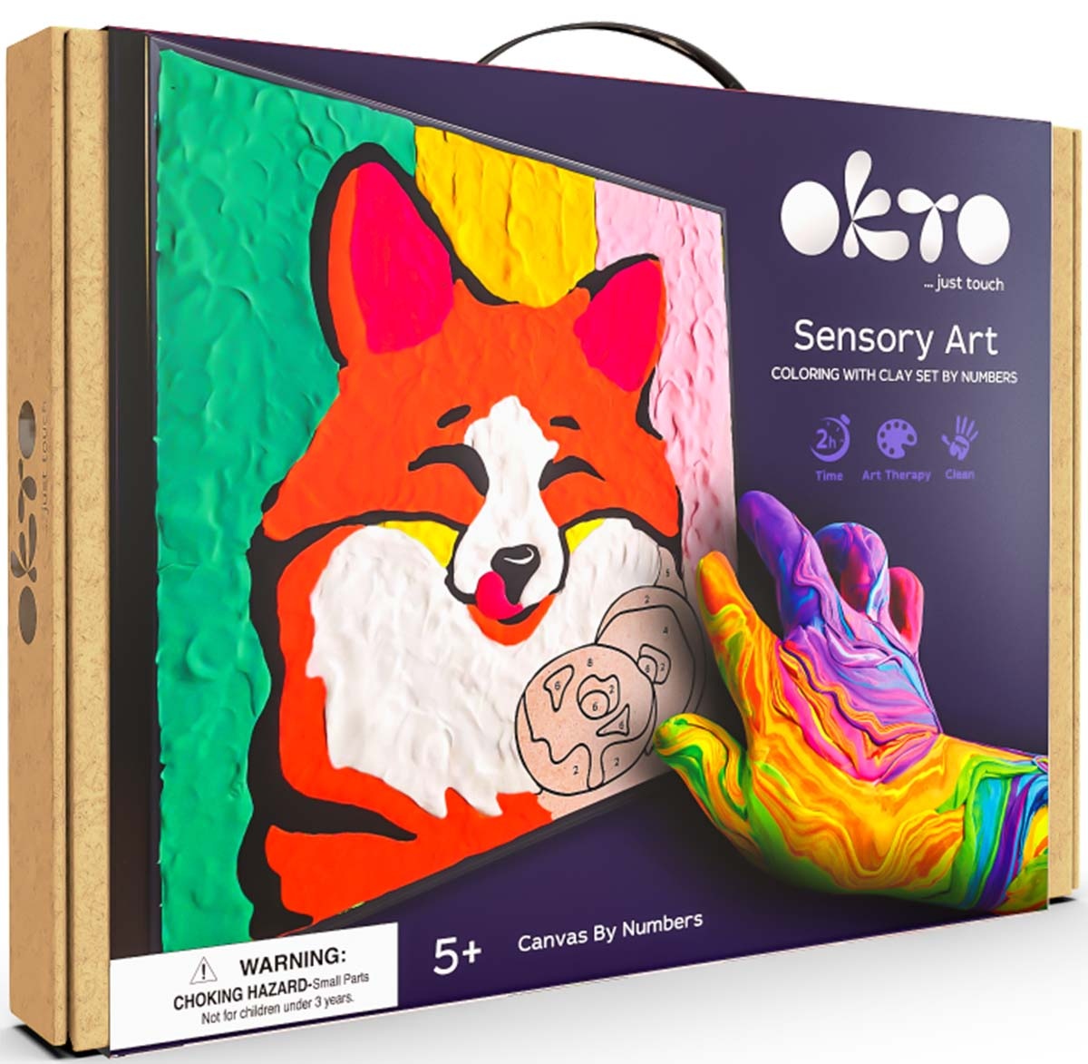 Sukelduge uutesse katsumismeeltesse, looge oma meistriteos, mis on joonistatud sõrmeotstega. Komplektis on kõik vajalik imelise rebasepildi loomiseks. Ökoloogiline kerge savi, mis annab võimaluse luua erinevaid vorme. Savi tahkub ja säilitab oma kuju, kuivades omandab see elastse ja mati efekti. Ei kleepu kätele, ei jäta värvijälgi, on kõvadelt pindadelt kergesti kogutav. Tervisele ohutu, mittetoksiline, ei põhjusta allergiat. Ainult looduslikud koostisosad. Vabas õhus kaotab savi osaliselt oma omadused 10 minuti jooksul, seetõttu ärge jätke seda kuivama. Kui savi veidi kõveneb või kaotab kleepuvuse, lisage paar tilka vett ja sõtkuge. Et see paremini aluse külge kleepuks, võite seda õrnalt kuiva salvrätiku või käsnaga hõõruda. Soovitatav on lasta pildil kuivada umbes 48 tundi, pärast kuivamist võib katta kaitse-lakiga. Valmis pilt on deformatsioonikindel, kerge ja siidine. HOIATUS: saastumise korral peske esemeid kuuma veega, vajadusel korrake. Mitte kuumutada. Hoida eemal süttimisallikatest. Mitte kuivatada gaasi- ega elektriahjudes. Ärge visake pakendit ära, see sisaldab olulist teavet. See komplekt arendab peenmotoorikat, liigutuste koordineerimist, loovust ja kujutlusvõimet, mälu ja tähelepanelikkust. Soovitatav lastele alates 5. eluaastast. Hoiatus! Ei sobi alla kolmeaastastele lastele. Väikesed osad, lämbumisoht. Kasutada täiskasvanu järelevalve all. Komplekti kuulub looduslik lõuend, juhend, puidust modelleerimisvahend, savikomplekt.